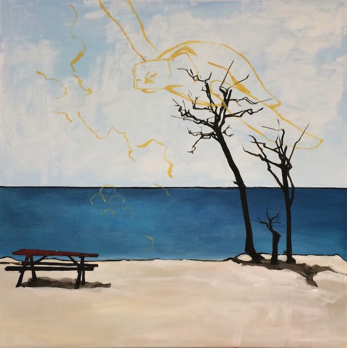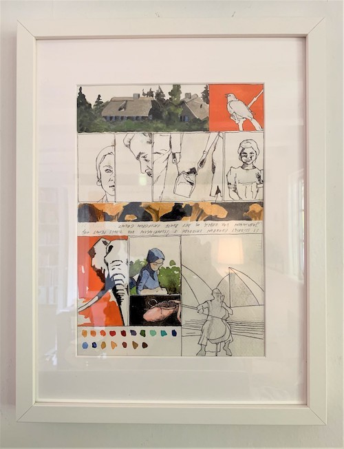 I mit seneste arbejde er jeg især optaget af at fortælle historier gennem billeder, tegneserie inspirerede spalter og referencer som jeg fletter sammen, til de danner det udtryk jeg ønsker at skabe. Det er historier til underbevidstheden med løse ender, som man selv må stykke sammen og som jeg håber, vækker nysgerrighed og genklang hos beskueren.
